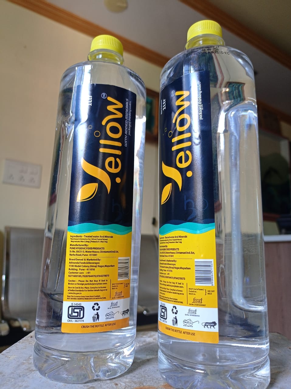 Yellow is a brand of natural mineral water that was launched in 2019 by a group of young entrepreneurs who wanted to provide a healthy and refreshing alternative to the packaged drinking water market. Yellow sources its water from the pristine springs of the Western Ghats, where it is naturally enriched with essential minerals and electrolytes. Yellow water undergoes minimal processing and is bottled in eco-friendly glass bottles that preserve its natural taste and quality. Yellow water is certified by the Bureau of Indian Standards (BIS) and the Food Safety and Standards Authority of India (FSSAI) as natural mineral water.